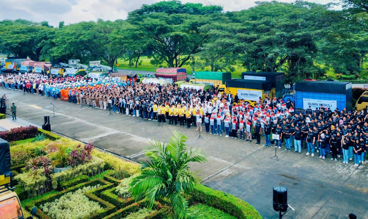 seribu karyawan BUMN yang bersedia turun langsung sebagai relawan untuk membantu masyarakat terdampak. Di saat yang sama, saya mengapresiasi kerja keras rekan-rekan BUMN yang terus memastikan layanan dasar tetap berjalan bagi masyarakat di wilayah terdampak,” tambahnya.