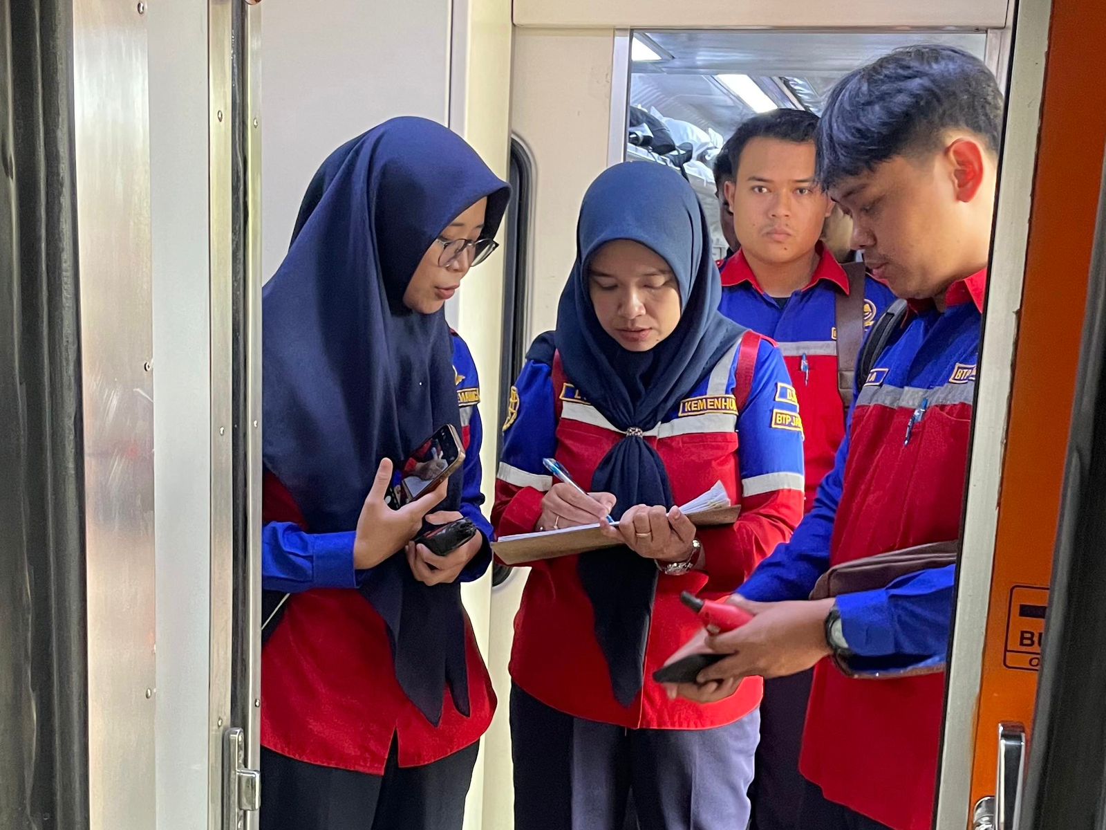 Di atas kereta api, pemeriksaan meliputi kelayakan fasilitas keselamatan seperti rem darurat, alat pemecah kaca, APAR, informasi jalur evakuasi, serta perangkat keamanan. Tim juga mengevaluasi berbagai fasilitas pendukung seperti ketersediaan P3K, informasi kontak kondektur, kebersihan toilet, pengatur suhu udara, fasilitas bagi penyandang disabilitas, hingga kejelasan informasi relasi perjalanan dan nomor tempat duduk.