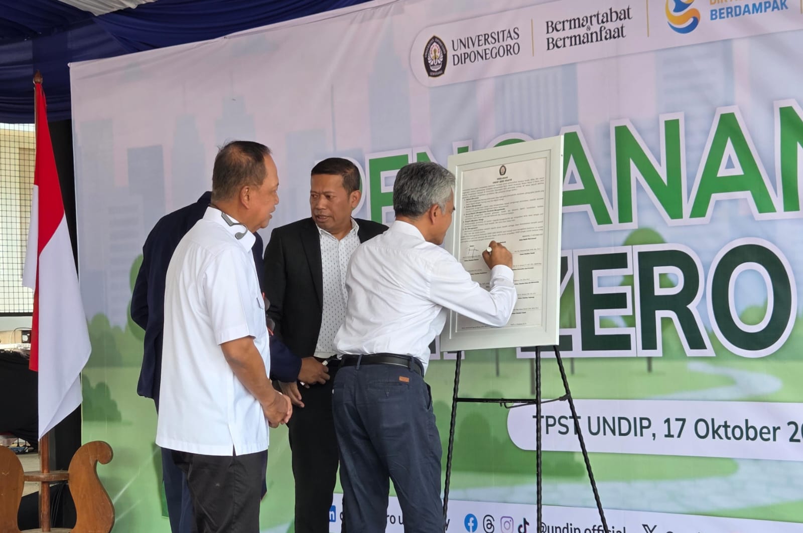 Sebagai simbol komitmen bersama, acara ditutup dengan penandatanganan Deklarasi UNDIP Zero Waste oleh Rektor, Ketua Senat Akademik, Ketua Majelis Wali Amanat, dan para dekan.